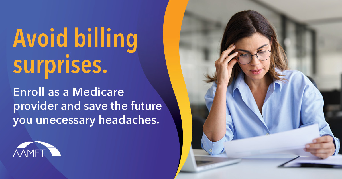 Taking this step now is an investment in smoother operations, reduced administrative stress, and a more sustainable practice. Find out more at aamft.org/Medicare.